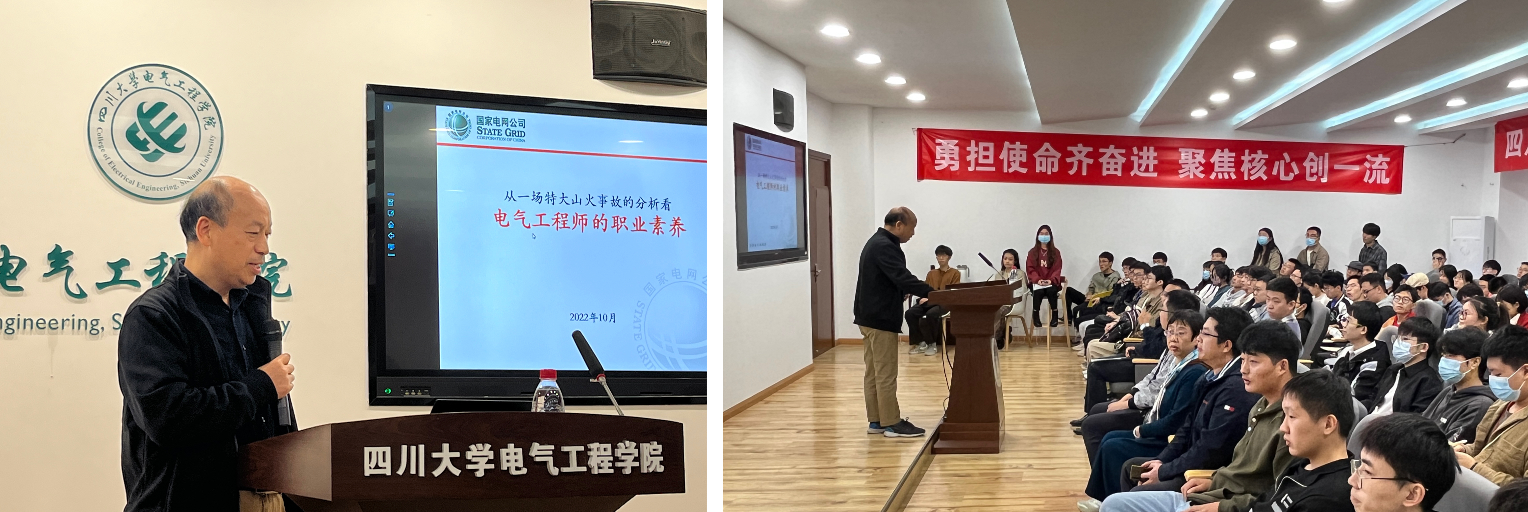 第二次课程邀请了国网四川省电力公司教授级高工张星海老师做了“从一场特大山火事故的分析看电气工程师的职业素养”的精彩专业讲座。张星海老师首先回顾了3.30西昌山火事故的过程,并介绍了此次山火事故与电力线路跳闸之间的关系,从提出假设到逐步论证,从而得出造成此次山火的直接原因。张老师对案例和相关专业技术的分析讲解,大大开拓了研究生眼界,激发了他们利用科学技术解决实际问题的兴趣。最后张星海老师还指出,合格的电气工程师不仅要原则性强、知识面广、有良好的团队协作精神和钻研精神,还要能够理论联系实际,有将图纸、方案、设想等在特定投资条件约束下变成工程实际的能力。