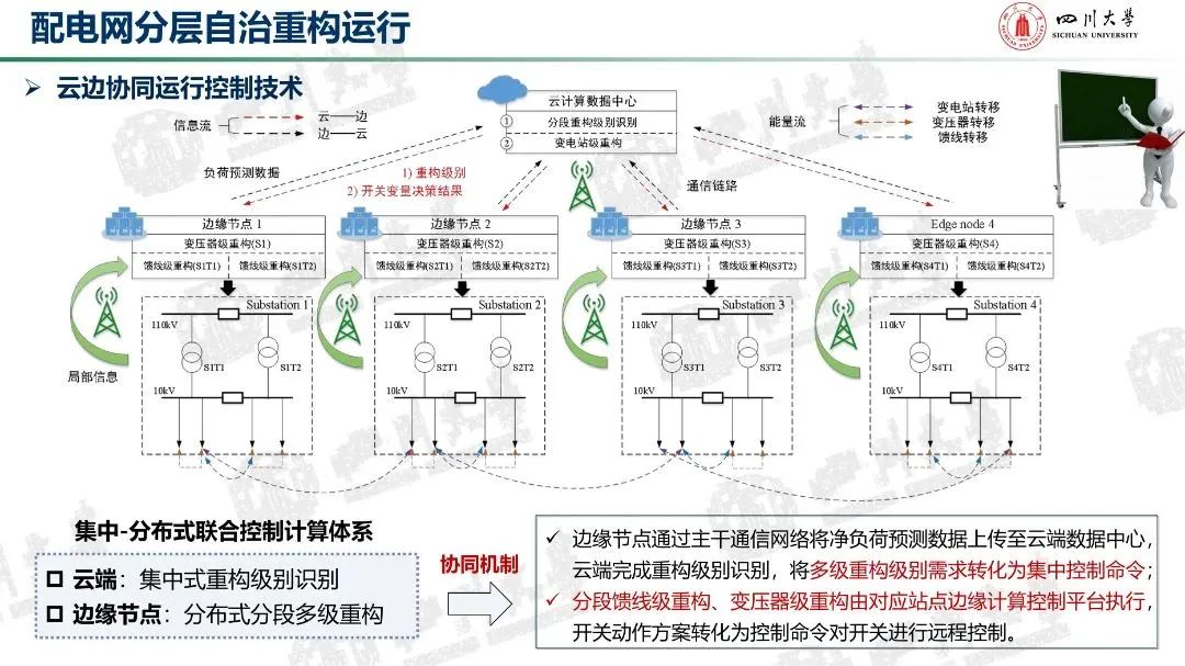 刘俊勇教授带领的智能电网优化运行与电力市场运营研究团队依托于智能电网四川省重点实验室。主要从事主动配电网、电动汽车充换电网络规划与交互、电力系统数据科学与信息物理系统、电力系统安全稳定、清洁能源及储能技术、电力市场等领域教学科研工作。出版合/译著8本,发表论文500余篇,240余篇SCI、EI检索,承担国家级、省部级和横向科研项目共160余项,累计项目经费1.5亿元,多次荣获部省级奖励,包括2019年四川省科技进步奖自然科学类一等奖“多约束条件下的电网安全分析与运行优化理论”、2019年度中国电力科学技术进步一等奖“多源协同的主动配电网运行可靠性提升关键技术、设备及工程应用”等。团队现有教授3名、副教授/副研究员9名、助理研究员1名,博硕士研究生100余名。