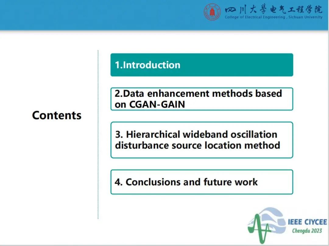 特聘副研究员郑宗生作了题为“电力系统宽频振荡扰动源定位智能增强技术”的主旨报告,介绍了目前电力系统宽频振荡扰动源定位面临的问题及人工智能技术应用于振荡源定位的挑战,分享了团队在基于条件生成对抗网络和生成对抗插补网络的数据智能增强方法和基于压缩感知与软阈值迭代算法的电力系统宽频振荡扰动源分级定位方法的研究工作。经本人授权,与大家分享报告PPT。