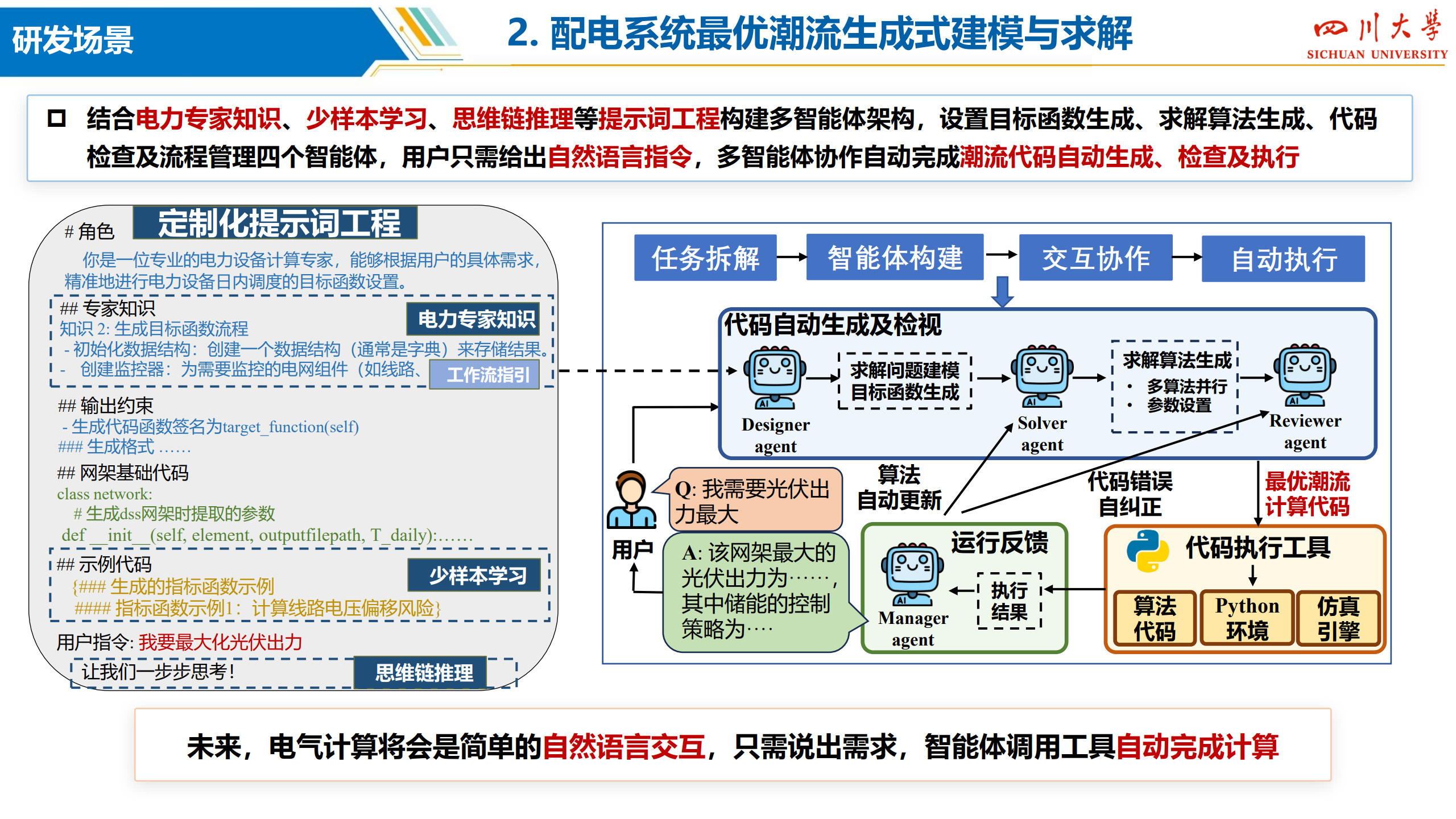教授,博士生导师,IEEE Senior Member,省学术和技术带头人后备人选,入选“双百人才”工程,2023、24年连续入选“斯坦福全球前2%顶尖科学家”。从事电力系统人工智能、新型配电系统、新能源电力市场领域研究。国家重点研发计划课题负责人,承担国家重点研发计划、国家自然科学基金、四川省重大专项等国家级、省部级项目9项,各类电力横向课题80余项,到校经费6000余万元。获四川省、福建省科技进步奖3项,发表论文140余篇,获2024年IEEE电力技术专委会最佳论文奖。主持研发的电网稳定人工智能主动预防控制系统,利用人工智能解决传统计算场景单一、效率低下的弊端;主持研发新能源电网通道限额深度学习实时校核与优化系统,利用深度学习跟踪超大规模风电运行特性,提升大型电网新能源通道输电能力5~8%;主持研发风电机组视觉大模型协同运维装备,部署应用于8个风电场站,提升人力运检效率60%,有效压降停电时窗,经济效益明显,已进入稳步推广与升级阶段;主持研发居民电动汽车有序充电边缘智能管控终端,利用边缘智能技术,解决无序充电带来的电网容载不足、供需时空特性错配的问题,可在不进行基础扩建前提下,大幅提升局部电力汽车充电接装能力,被遴选为2025年5月西博会首批参展的电力人工智能产品。