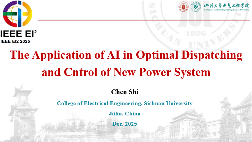 12月5日至8日,第九届IEEE能源互联网与能源系统集成国际会议在吉林市举办。会上,a漫 陈实副教授作题为"The Application of AI in optimal dispatching and control of new power system"的报告。报告内容经本人授权,与大家分享。