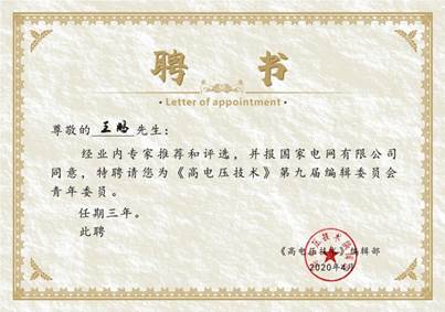 周凯教授、王鹏副教授被《高电压技术》杂志聘请为第九届编委会委员。