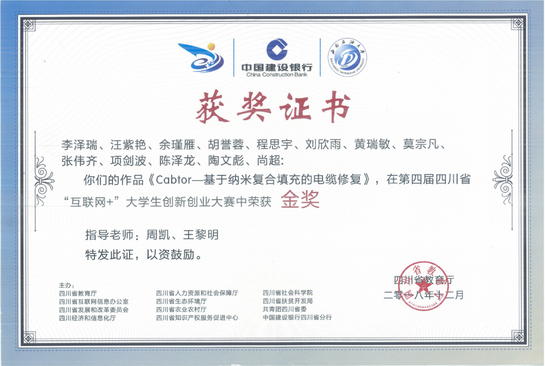 为解决电力行业共性问题,周凯教授及其研究团队发展了电缆水树老化理论和诊断技术,在多家电缆制造龙头企业和电网企业得到了推广应用,自2015年至今已实现直接和间接经济效益 9000余万元。同时,发明了基于有机-无机纳米复合的水树修复方法,经专家组鉴定为国际先进、国内领先水平。研究成果已先后在约20个单位应用。电缆修复技术的发明对于提升电缆绝缘的可靠性,节约电力企业运行成本具有重大意义。