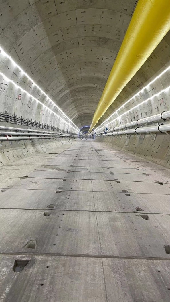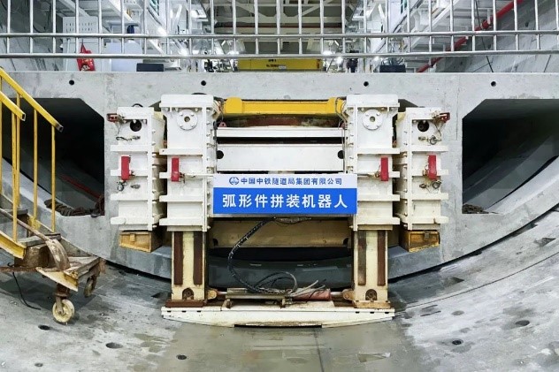 PMCIRI团队)同中铁隧道勘察设计研究院和广东省隧道结构智能监控与维护重点实验室协同攻关,在上海轨道交通市域线机场联络线工程JCXSG-11标成功完成“隧道内部结构智能化全预制拼装技术与装备”工业性试验。该项智能建造技术的成功应用,实现了隧道内部结构与隧道掘进的同步施工,填补了国内隧道内部结构全预制智能拼装领域的技术空白,标志着我国在隧道智能建造技术领域取得了重大突破,经现场检验,弧形件与中隔墙实现高精度拼装,误差仅在2毫米之内,拼装精度和质量处于国内领先水平。