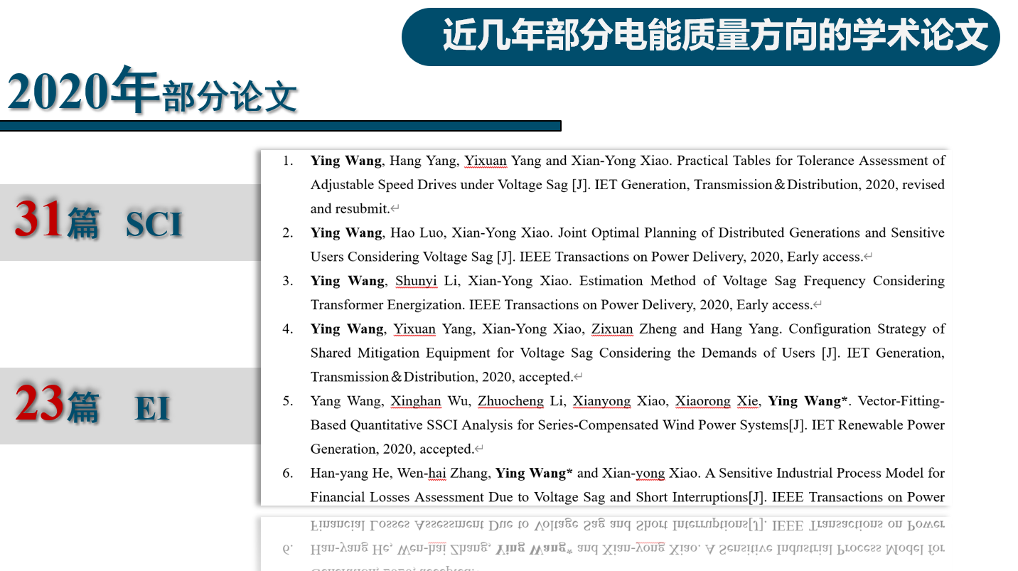 2019-2023年团队在电能质量领域发表的部分高水平学术论文: