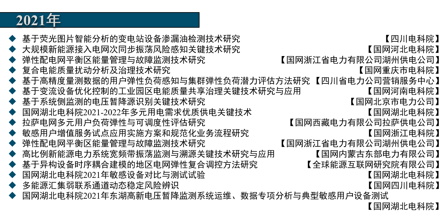 • 电网公司:国网总调、四川省调、山西省调、云南省调、成都电力局、重庆电力局、南京电力局、杭州电力局、济南电力局、四川省检修公司、北京市供电公司、上海市电力公司、天府新区供电公司、佛山电力局、南网电科院、昆明供电局、广西电科院等。