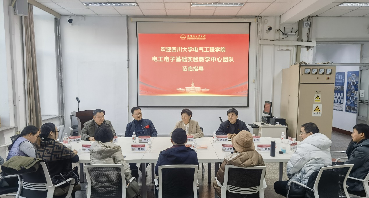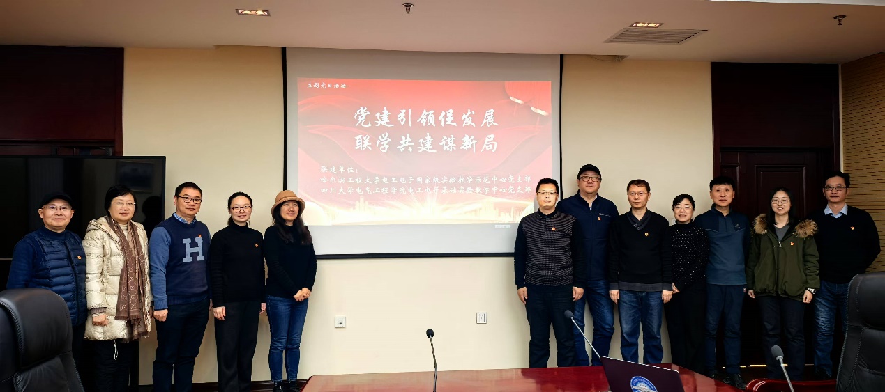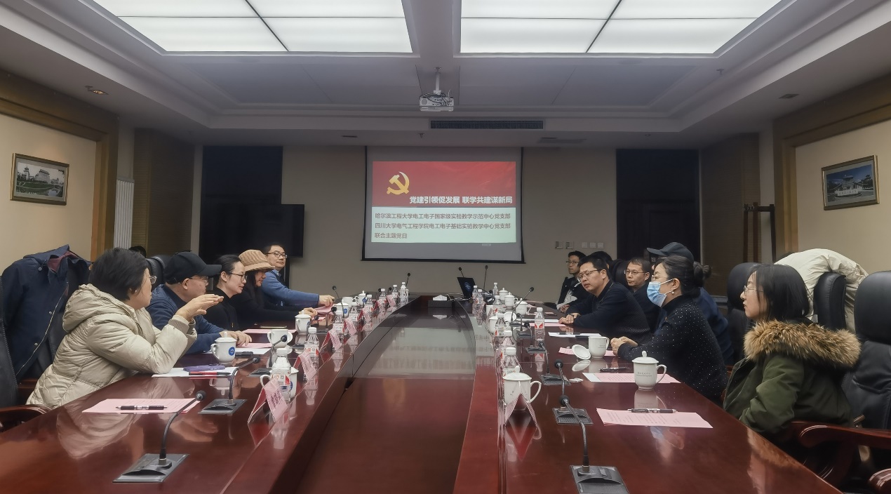 电工电子基础实验教学中心(基础中心)党支部的政治功能和组织功能,12月13日、14日,由学院党委副书记、纪委书记、工会主席张英敏带队,基础中心党支部教师党员代表一行赴哈尔滨,分别与哈尔滨工业大学、哈尔滨工程大学电工电子国家级实验教学示范中心党支部开展以“党建引领促发展 联学共建谋新局”为主题的联合党建交流活动。