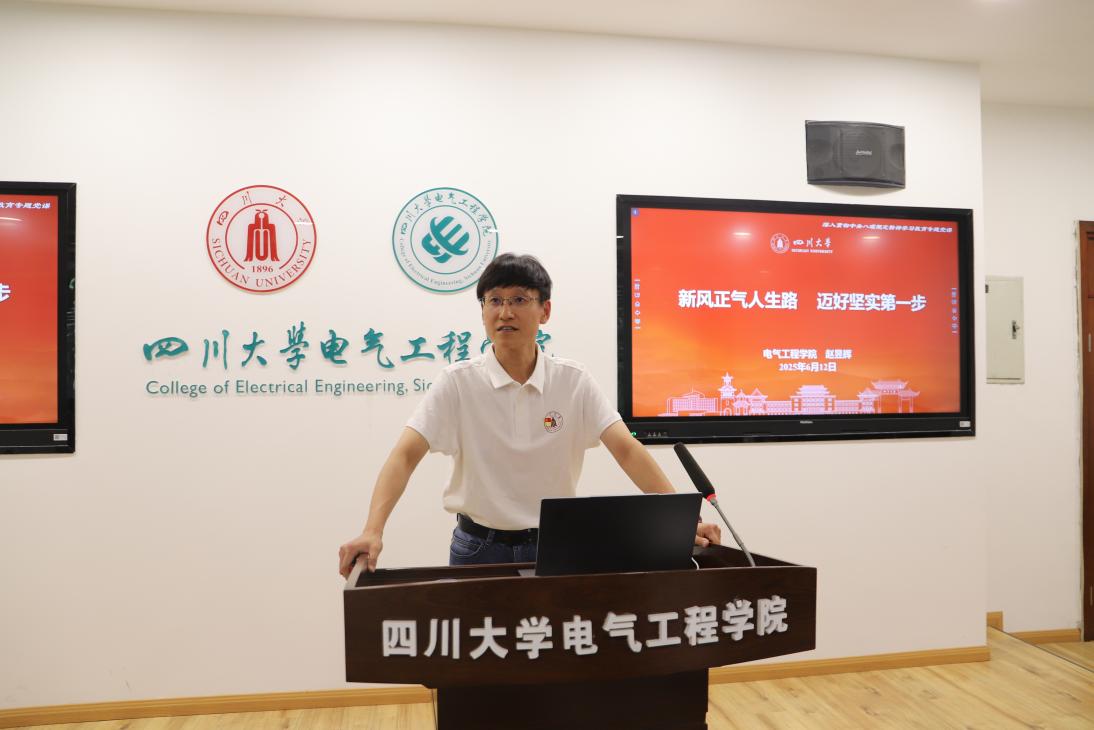 党委书记赵昱辉为学院毕业生党员讲授深入贯彻中央八项规定精神学习教育专题党课,上好离校前的“最后一课”。学院全体毕业生党员参加了此次党课。党课由研究生第一党支部书记汤博主持。