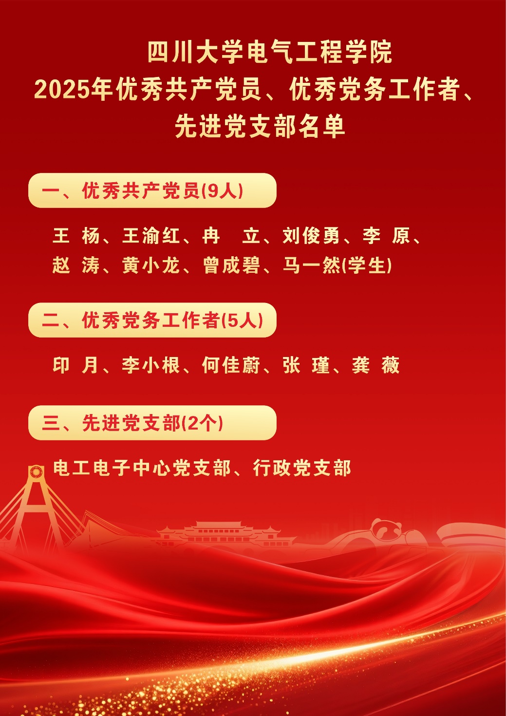 赵昱辉书记在讲话中代表学院党委向全院党员同志致以节日的问候,向为推动学院高质量发展作出积极贡献的全体教职工表示感谢,向受到表彰的先进集体和个人表示祝贺。他说,我们要以伟大建党精神汇聚推动发展的磅礴力量,持续强化“五个更加有力”,以高质量党建引领保障高质量发展。一是强化政治引领更加有力,深入贯彻落实党中央和学校党委各项决策部署;二是创建“三个一流”更加有力,奋力打造一流领导班子、一流党支部和一流党员队伍;三是推动互融互促更加有力,将党旗插在人才培养和科研创新最前沿,将党员先锋模范作用体现在教学科研、人才培养和服务保障第一线;四是坚持作用发挥更加有力,牢记自己的第一身份是共产党员、第一职责是为党工作;五是推进全面从严治党更加有力,坚持把作风建设融入日常工作,发扬自我革命精神,守牢红线底线,奋力答好“建设一流,电气何为”的时代答卷。