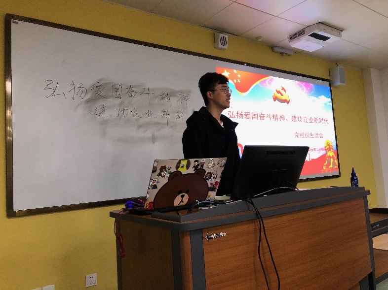电气信息学院2018级硕士第二支部委员会于研究生院3区304召开“弘扬爱国奋斗精神,建功立业新时代”主题党组织生活会。会议由支部书记罗兰同志主持。