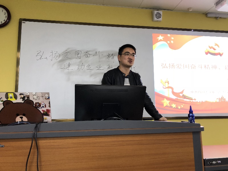 紧接着,支部成员观看了爱国主义教育视频,了解了钱学森等老一辈科学家为了祖国发展而不懈奋斗的精神,在场同志无不心生敬佩。寇然同志认为,视频中给他印象最深刻的是钱学森老先生儿子说的一句话:老一辈科学家将自己的兴趣与祖国的需要结合起来,在追求自身价值的同时为祖国奉献了自己的一生。他表示,我们作为研究生,在各自的研究领域,也应该瞄准世界前沿,让自己的研究成果能为祖国的发展贡献一份力量。