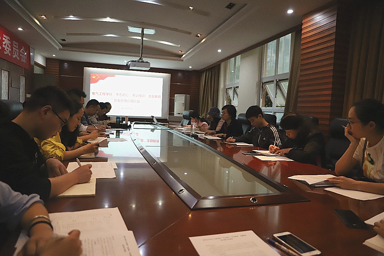 “不忘初心、牢记使命”主题教育党支部书记培训会在学院高压楼会议室召开,学院党委书记韩芳、党委副书记兼纪委书记张英敏、党政办主任邓丽华、学院全体教工党支部书记和学生党支部书记参加培训会。