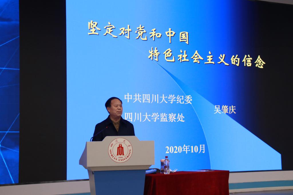 纪委副书记吴肇庆为学员们讲授了“坚定信念”专题党课。首先吴肇庆老师以老一辈共产党人的生动事例阐释了党的信念的丰富内涵,强调了当代青年树立对理想信念的重要性。接着,吴肇庆老师通过分析当今国际环境和国际政治斗争带来的影响,加深学员们对于理想、信念及改革开放等问题的认知。最后,吴肇庆老师从四个方面讲述了如何在学习与实践中坚定对中国共产党和中国特色社会主义的信念,引导学员们要学习贯彻好中国特色社会主义理论和思想,在新时代多参加社会实践,坚定热爱党、祖国和中华民族的信念。