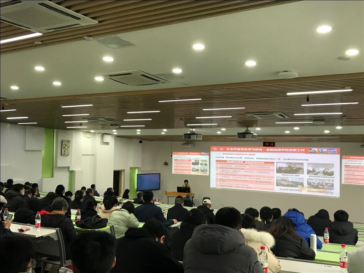 学院其他领导也就自身分管领域工作作了汇报和述职。戴婷婷副书记以“合力思政、培根树人”主题向全体教师汇报了学院学生全面发展的相关工作;李长松副院长总结了本年度本科教育工作情况和学院下年度重点工作计划;周步祥副院长汇报了学院科研工作情况;李成鑫副院长从财经工作、国资管理、日常保障等方面进行汇报;张英敏副书记向大家汇报了纪检、工会、离退休和关工委、统战等方面的工作,并作2021年违规违纪案例通报,号召大家行端品正、戒奢以俭、廉洁自律,风清气正过年节。