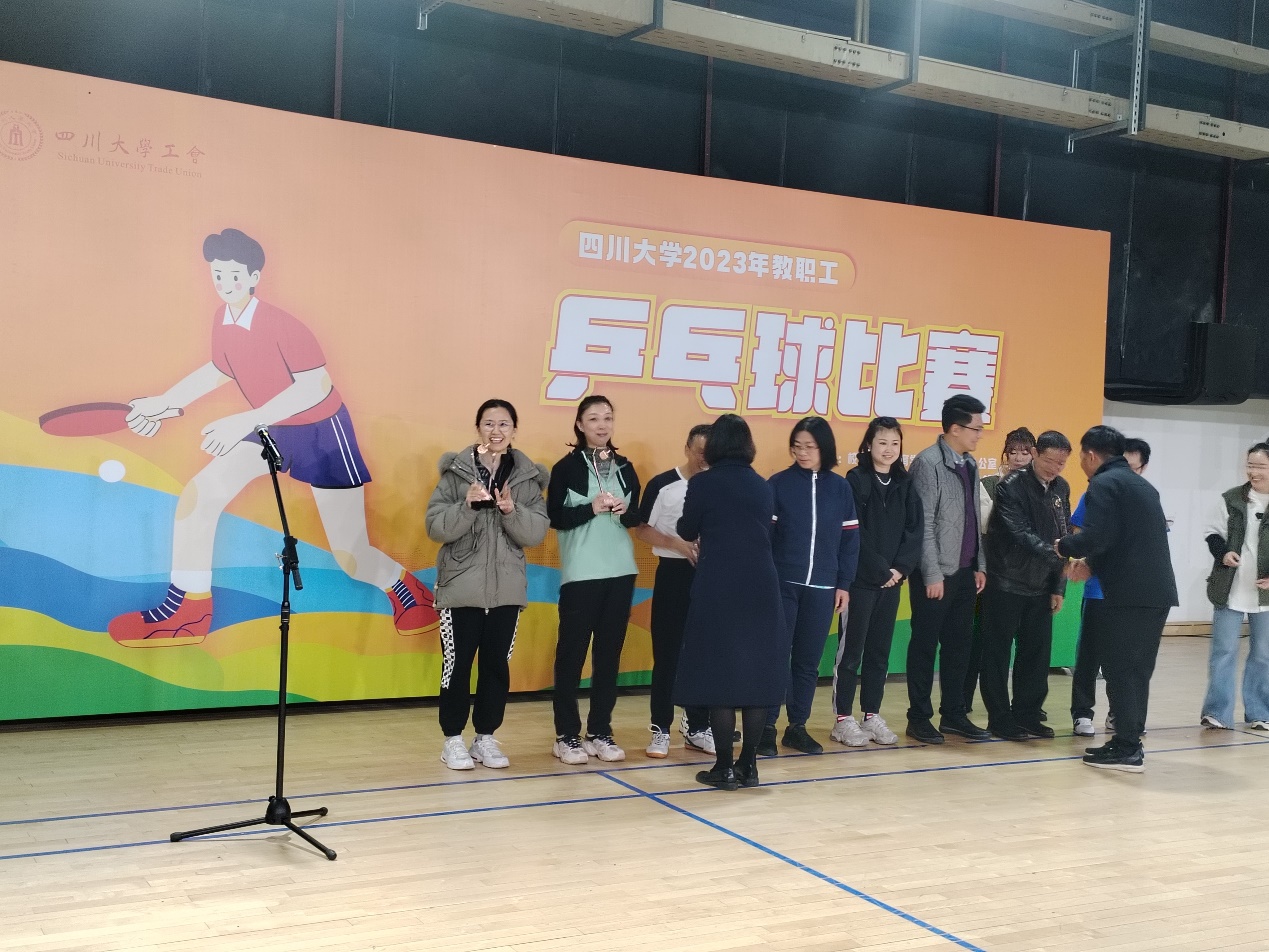 乒乓球的发展奠定了良好的基础,同时也展示了学院教师的亮丽风采,激发了广大乒乓球爱好者的兴趣,让老师们树立了“健康工作,快乐生活”的理念。在此特别感谢筹办赛事的校工会、体育学院,以及校体委办公室的老师们,本届教职工乒乓球比赛圆满落下了帷幕。