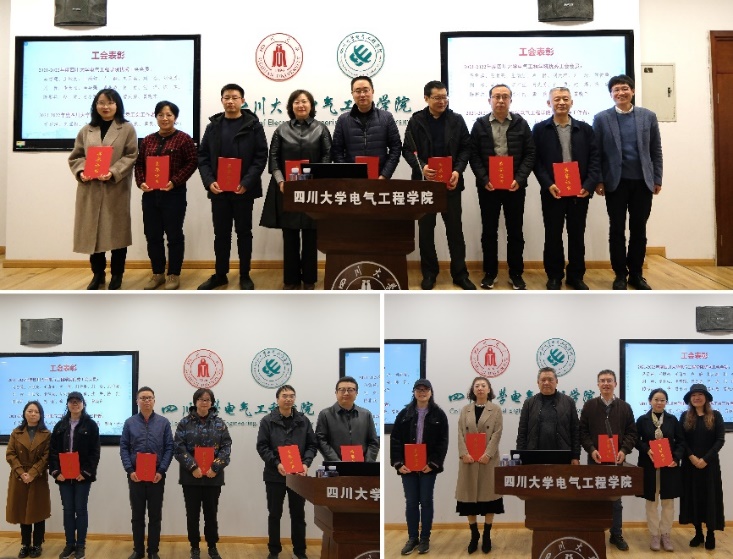 张英敏副书记宣读了2021-2022年度学院优秀工会会员和优秀工会工作者获奖名单。学院党委书记赵昱辉,副书记戴婷婷、张英敏为获奖教职工颁奖。