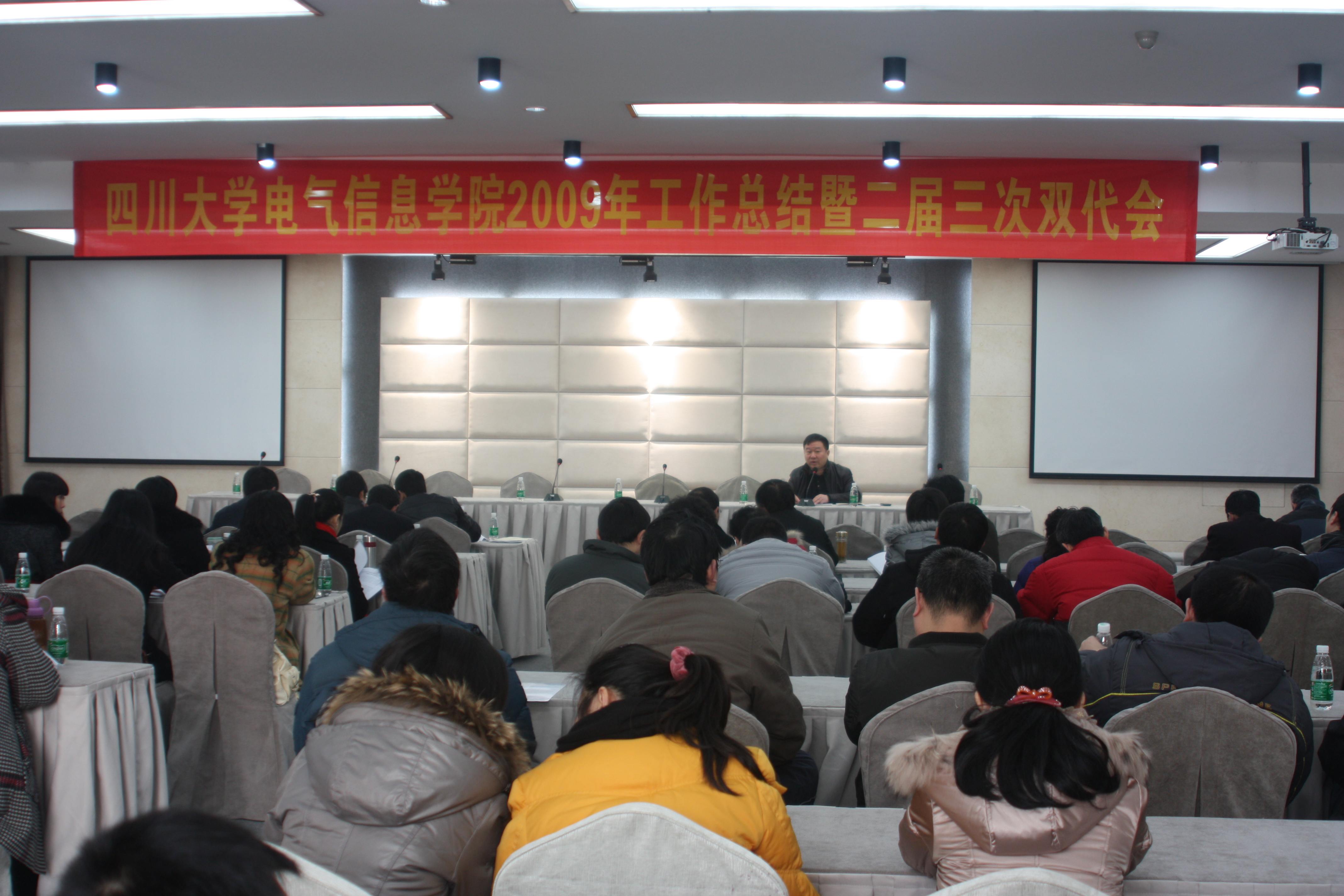 会议首先听取了电气信息学院院长刘俊勇教授作的《2009年度工作报告》。刘院长在报告中对2009年学院在科研、教学、服务、党政工作等方面的工作做出了肯定,并且对2010年的工作提出了更高的期望。