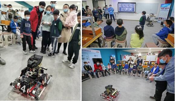 党委和工会统一部署下,在确保疫情防控安全的前提下,由专业中心教师、实验技术人员、研究生、本科生等10余人组成的工作团队共同保障实施。团队对活动进行了精心组织和策划。整个活动分为三个环节,分别是人工智能机器狗表演及操控体验、“乐动机甲”——“全国大学生机甲对抗大赛”视频讲解、战斗机器人动作演示及操控体验和三臂机器人绘画表演。