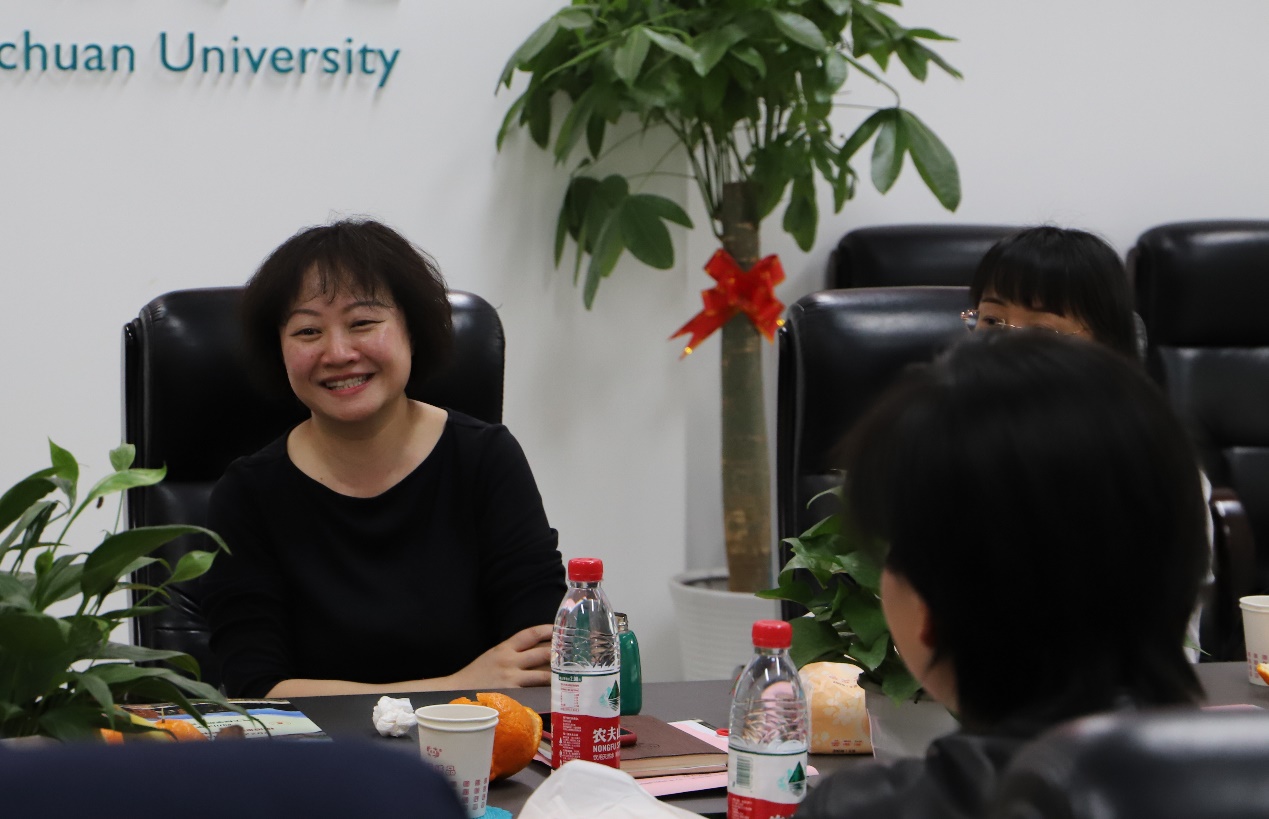 韩书记首先致欢迎词。她首先感谢校工会一直以来对学院各项工作和对学院教师的关心和支持,特别是对学院工会特色项目的指导和打造,使其成为了工会工作的一个亮点。当前学院事业发展处于快速上升时期,学院工会围绕学院中心工作,凝聚全院师生人心,为学院发展营造良好氛围。接下来,学院工会将进一步发挥学院优势和特色,打造更多工会特色活动,为学院及学校教职工提供更多更好服务。希望校工会领导和老师们一如既往对学院工会的工作进行指导,促进学院工会更好发展。