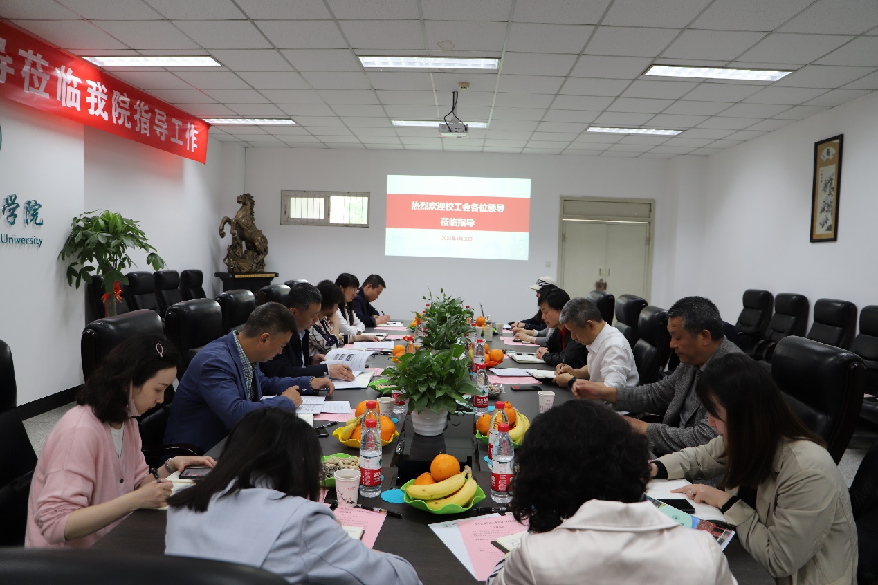 调研座谈。座谈会在学院基础教学楼A220会议室举行,参加调研会的有校工会常务副主席袁斌、副主席冷泠、副主席吕海涛及校工会相关同志。学院党委书记韩芳、院长肖先勇、党委副书记兼纪委书记张英敏、工会主席黄顺良、学院工会委员和各单位工会小组长等参加了调研会。
