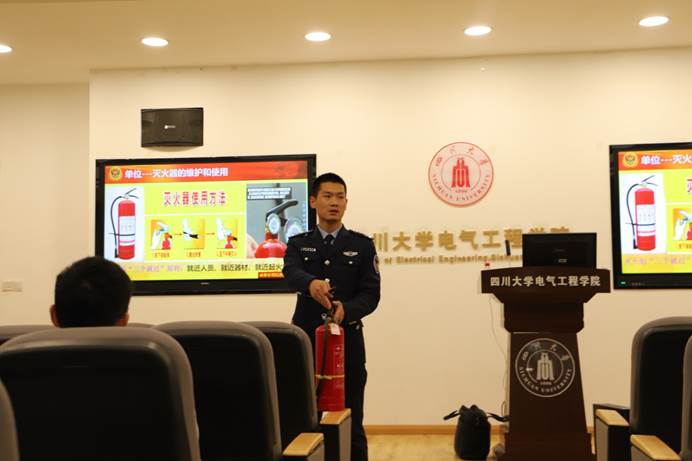 培训首先举例了近年来发生的多起消防安全事故,然后结合学院特点讲解了实验室、高层建筑日常防火工作如何开展,如何预防火灾发生,如何进行救人、自救等内容。随后现场进行应急疏散演练和实地灭火训练,让师生熟悉火灾现场应急疏散方法,熟练掌握火灾现场灭火常用的干粉灭火器、防毒面具等性能和使用方法。