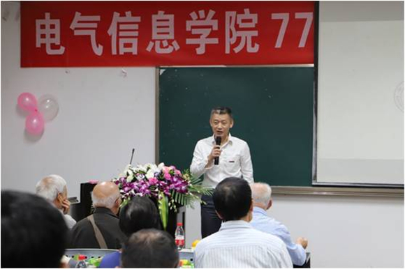 随后,刘伟华、王向红、毛日章3位优秀校友代表先后致辞。校友代表们对电气信息学院及学院教师们表达了最真挚的感谢,表示昔日的谆谆教导仍历历在目。对于学院的飞速发展,校友们欣喜地表示祝贺,并表示会铭记学院及老师们的栽培之恩,心系学院的发展建设,助力学院在新时代取得辉煌成就。