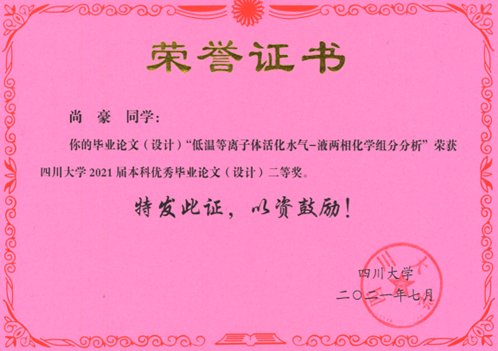 2021首届全国大学生等离子体科技创新竞赛,二等奖(冀一玮,2021级研究生)