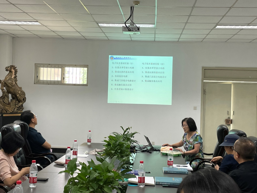 基础中心主任周群介绍了近几年来中心在基础课程的理论教学和实验教学方面做的工作和发展情况,中心书记梁斌介绍了在电子技术实验和电子实习方面的教学改革,以及基础中心教师队伍建设和发展。接下来,“电路原理”课程负责人张英敏、“模拟电子技术”课程负责人贾绍芝、“数字电子技术”课程负责人陈彬兵、“电磁场”课程负责人朱英伟、“电工电子学”课程负责人雷勇,以及对应实验课教学负责人马雪莲、曹晓燕、徐雪梅等老师,依次做了课程建设情况的详细汇报和讨论。