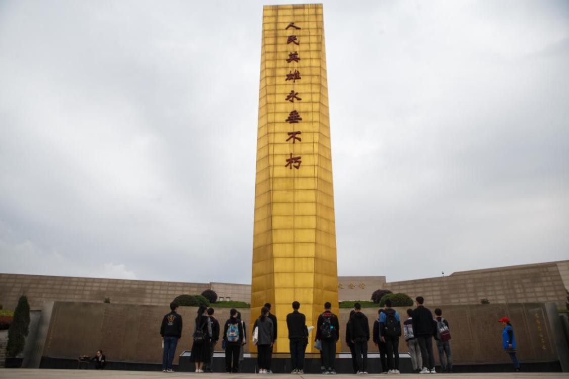 烈士陵园的广场上,庄严肃穆的烈士纪念碑巍然矗立,直指云天。上午九点,清明祭英烈活动正式开始。全体肃立并奏唱《中华人民共和国国歌》,向为民族独立、人民解放英勇牺牲的烈士默哀。伴随着悠扬肃穆的《献花曲》,学生党员代表走向纪念碑深情瞻仰并敬献鲜花,向革命烈士表达崇敬之情。