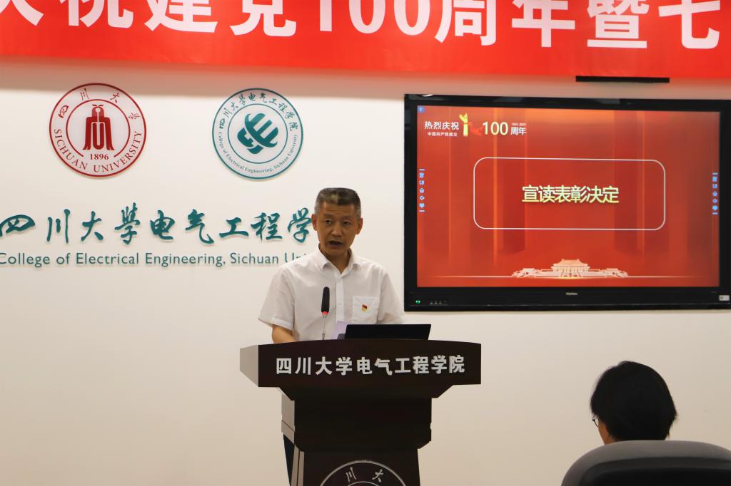 四川省政府原副省长、学院杰出校友韩邦彦同志为党员师生代表讲授党史学习教育专题党课。会议对学院4个先进党支部、17名优秀共产党员、6名优秀党务工作者和19名先进个人进行了表彰。学院全体班子成员、两委委员、系中心干部及党员师生代表参加了本次大会。