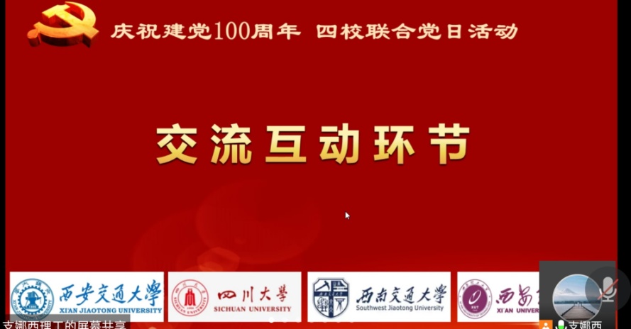 电工电子基础教学实验中心党支部联合西安交通大学、西安理工大学和西南交通大学三所大学的电工电子教学党支部,结合教学工作实际,开展了一次主题为“学史力行践初心,校际互联促发展”的线上互联主题党日活动,来自四个高校党支部的近百名党员及教师通过线上线下相结合的方式参加了活动。
