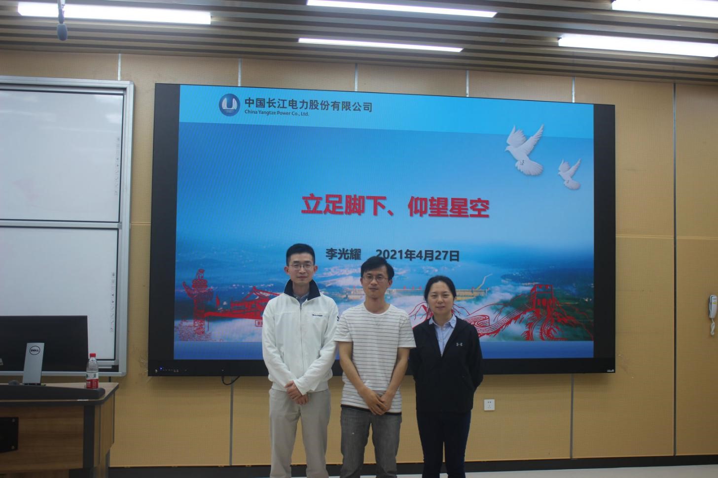 李光耀从“立足脚下”与“仰望星空”两方面展开主题分享。“立足脚下”,意在踏实工作,提升专业能力、扩展知识和视野;“仰望星空”,旨在不忘初心,坚守电气人的社会责任与使命。李光耀认为,从事电气专业是“从事伟大的事业,为人类送去光明”。他谈及了自己参加工作时面临的艰苦,并称自己的工作是“辛苦我一人,光明千万家”。从他的发言中,我们看到了一位坚守岗位、甘于奉献的鲜活的电力工作者形象。李光耀希望同学们从生活小事做起,不畏辛苦,传递温暖,相信努力,保持自律。
