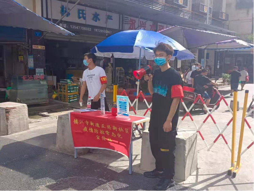 云团队成员陈阅海同学则选择加入防疫志愿者的工作行列。8月10日,他来到四川省遂宁市船山区镇江寺街道办事处,了解疫情防控情况及措施,并跟随其他志愿者一齐,在镇江寺水产区卡口进行防疫知识宣传、市民体温检测。随后,他跟随防控巡逻组进行巡逻,视察各个公共场所防控措施是否落实、防疫意识是否到位。“我坚信,凝聚起来的力量,一定能够战胜疫情,让全中国的人民都摘下口罩,共同在蓝天下自由呼吸。”作为入党积极分子,陈阅海同学以高度的责任感,主动加入基层防疫队伍,为家乡的防疫工作贡献自己的力量。