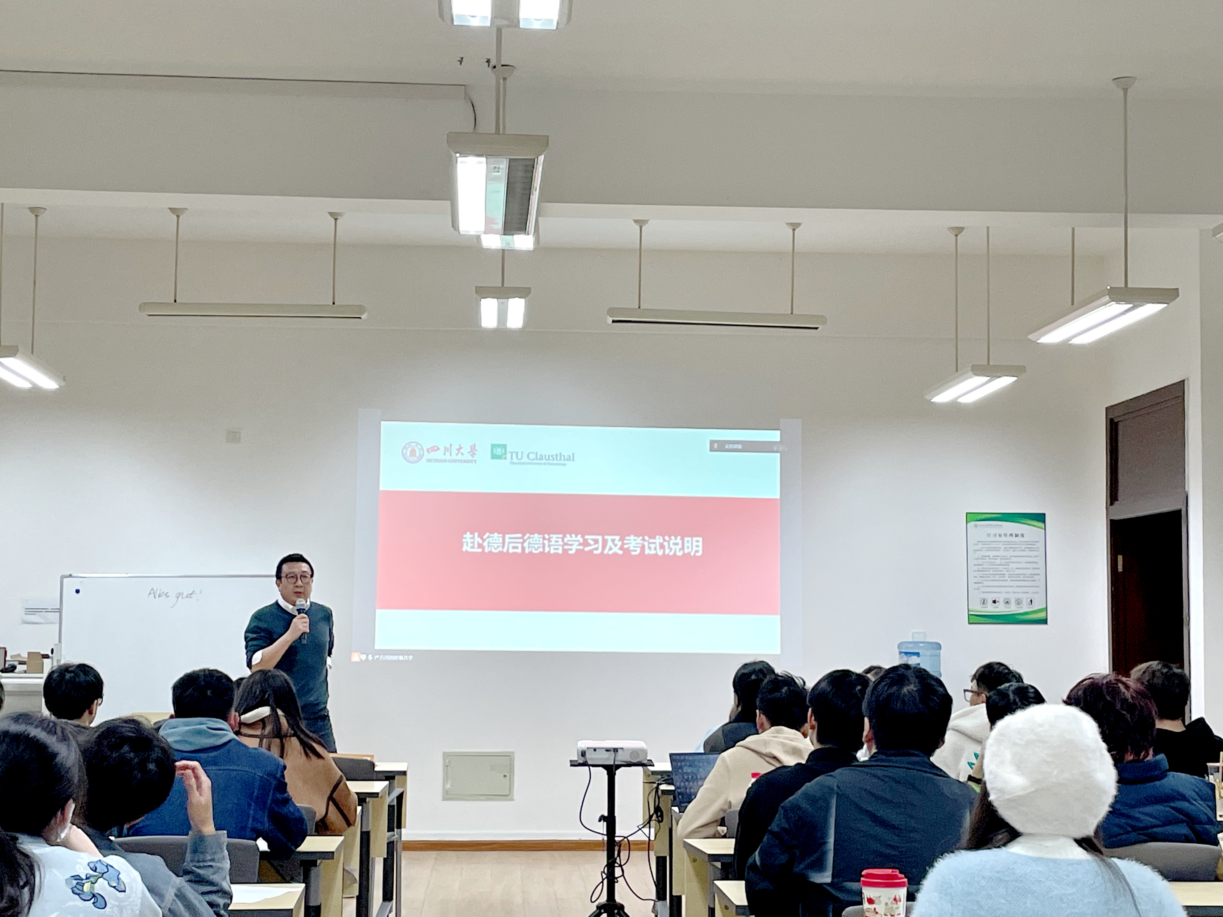 2021级中德班赴德流程说明会在江安校区二基楼B103教室顺利举行。2021级中德班即将于本学期完成前两学年在川大的学习,并于今年秋季学期赴德国克大开始第三学年的学习。a漫