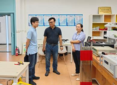 为广泛听取师生意见,推动学院主题教育走深走实,6月16日,学院党委书记赵昱辉、副书记戴婷婷一行来到江安校区,先后走访调研了电工电子基础实验教学中心、能源电气材料与智能装备实验室,深入江安校区西园17舍“一站式”学生社区服务点、学院中德合作办学项目办公室,并深入2022级本科生《形势与政策》课堂,调研了解学院人才培养等相关工作。