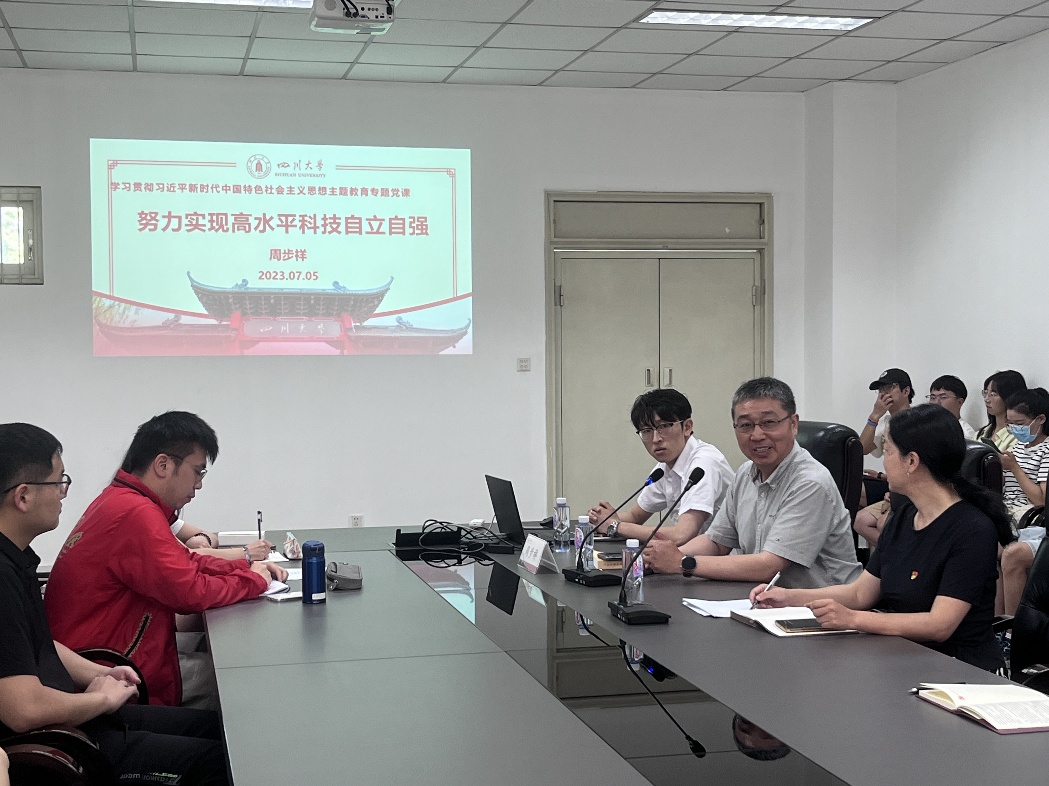 研究生第八党支部在基础教学楼A220教室开展学习贯彻习近平新时代中国特色社会主义思想主题教育。学院副院长周步祥教授为支部党员同学讲授题为“努力实现高水平科技自立自强”的专题党课。研究生第八党支部书记张瑾老师以及支部全体党员同学参加了本次学习。