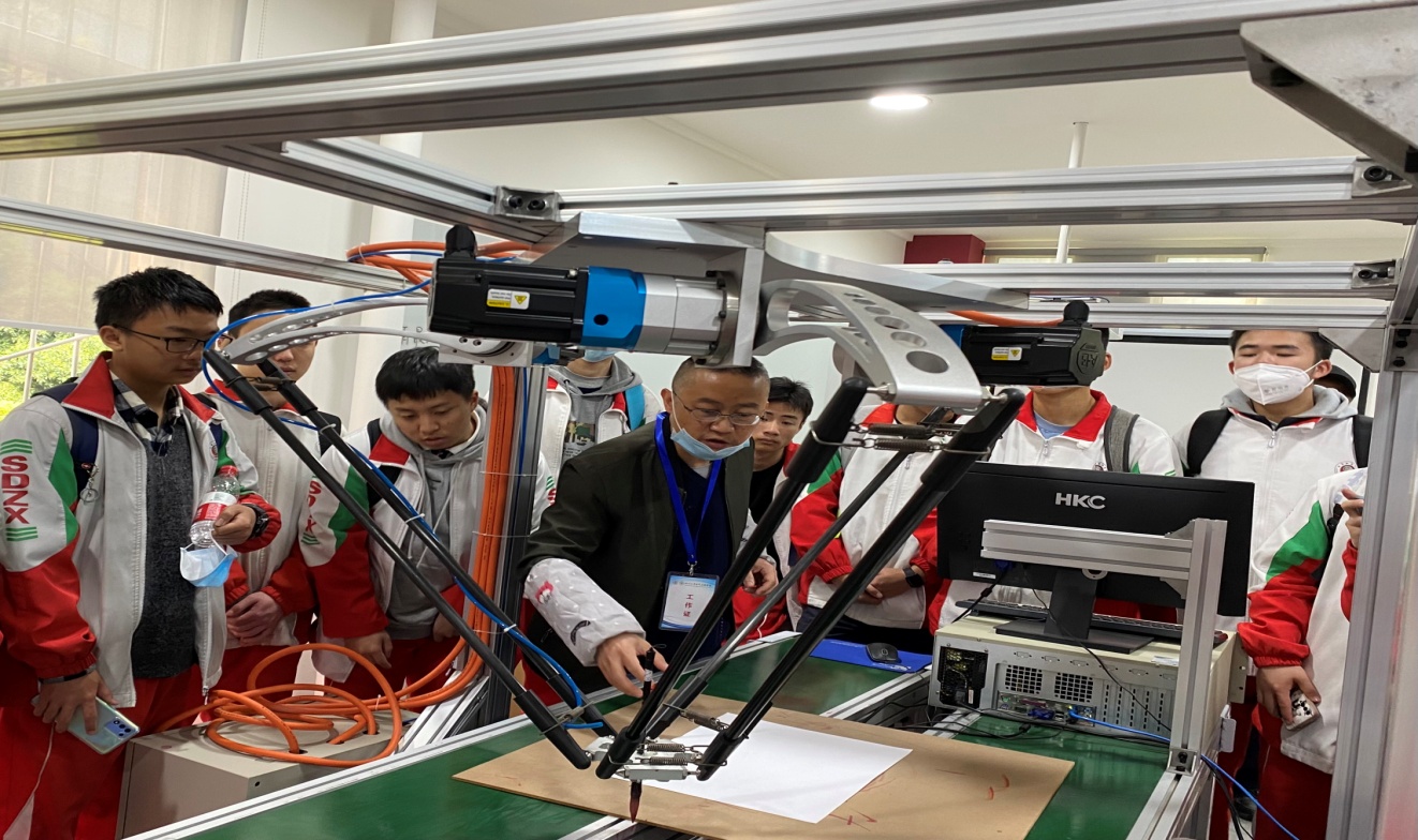 随后,在专业实验中心老师的带领下,同学们分别对专业中心的高电压实验室、新型电力系统与综合能源系统实验室、继电保护实验室、智能电网及能源互联网实验室、新能源系统实验室、智能控制实验室、工业机器人实验室、以及云计算实验室等进行参观。