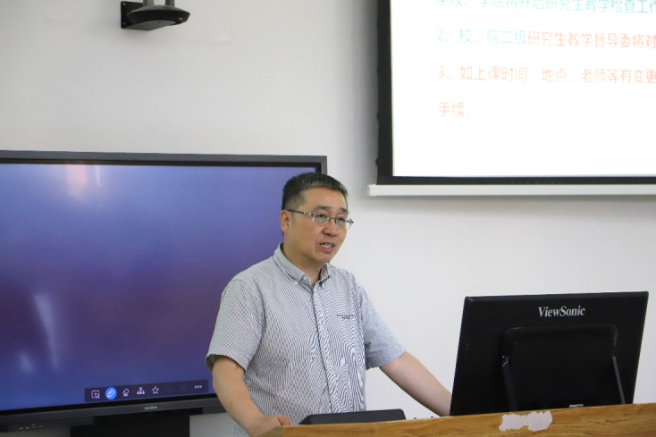 周步祥副院长重点就新学期学院科研和研究生培养工作作了布置。他重点解读了研究生院关于导师和研究生管理等相关文件精神,针对导师资格审核、学术学位研究生培养方案修订、课堂教学质量提升及科研质量提升等重点工作进行了强调。
